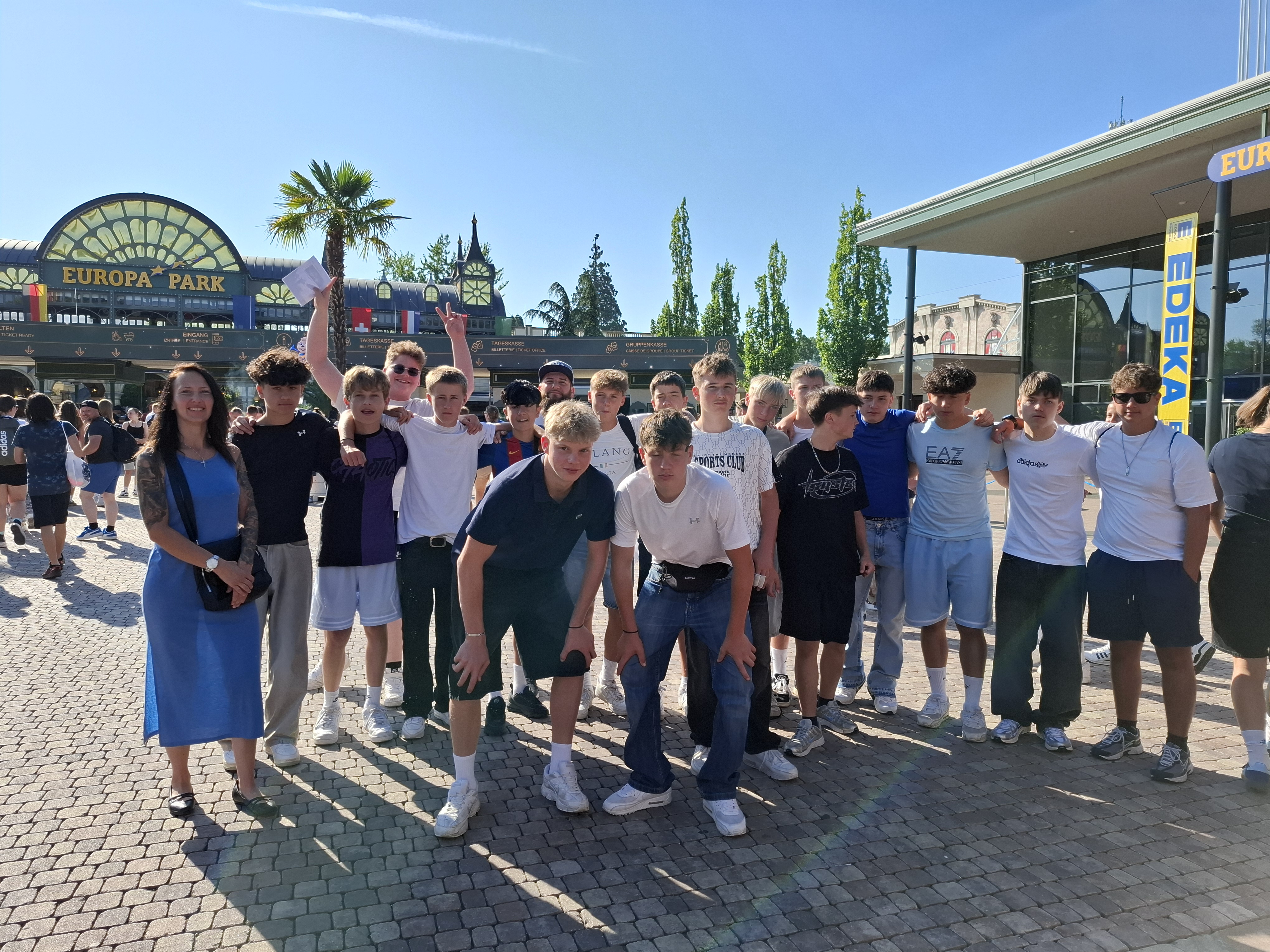 Frisch gestärkt durch das Frühstück, ging es dann zum absoluten Highlight des Wochenendes: dem Europa-Park! Die klare Vorgabe, in Gruppen von mindestens drei Jungs unterwegs zu sein und niemanden „zurückzulassen“, wurde super umgesetzt. Bei bestem Sommerwetter, kurzen Wartezeiten und kaum Betrieb im Park kam jeder voll auf seine Kosten. Manche entwickelten sogar ganz eigene Taktiken zur Wartezeitverkürzung – erschreckend effizient, aber erfolgreich!