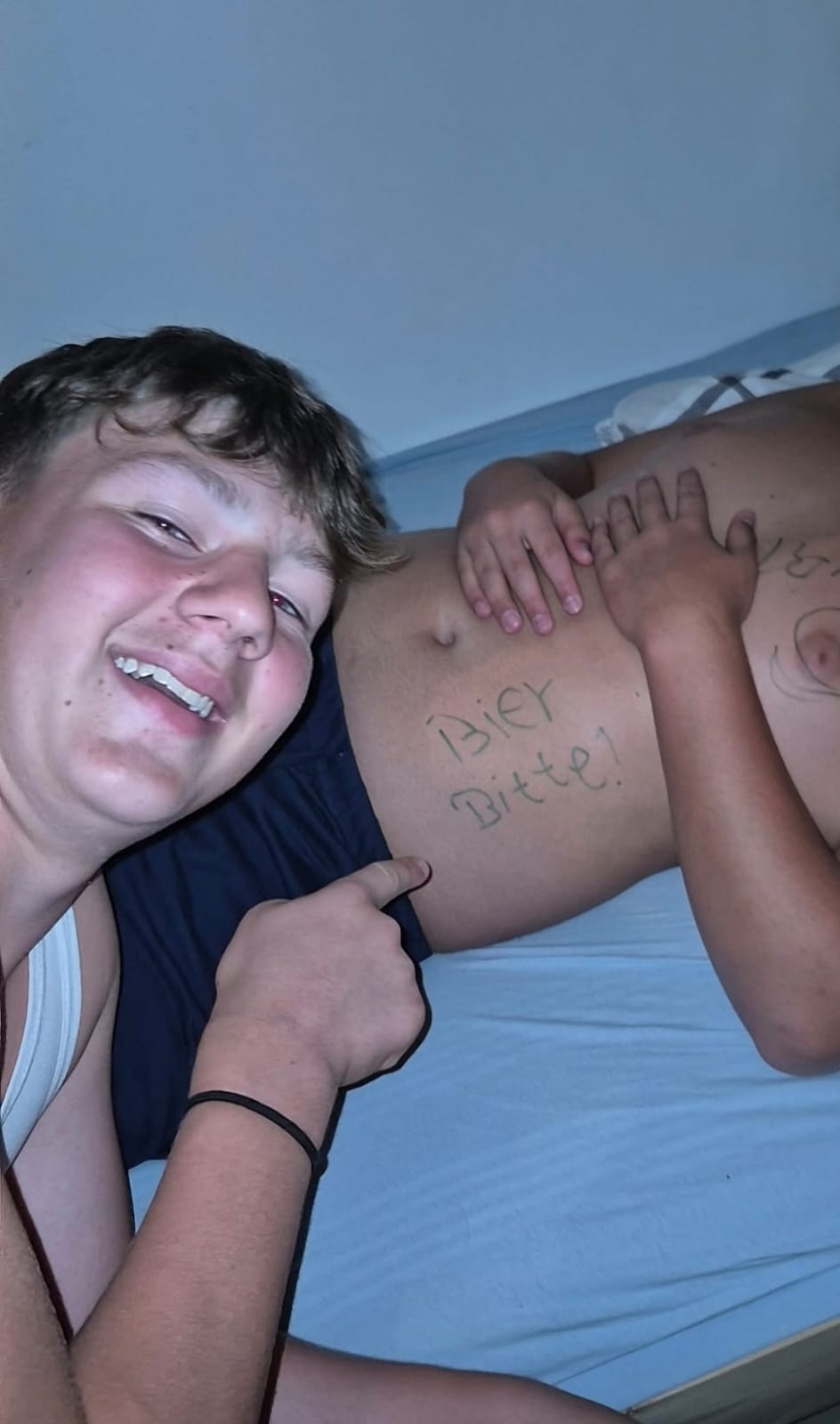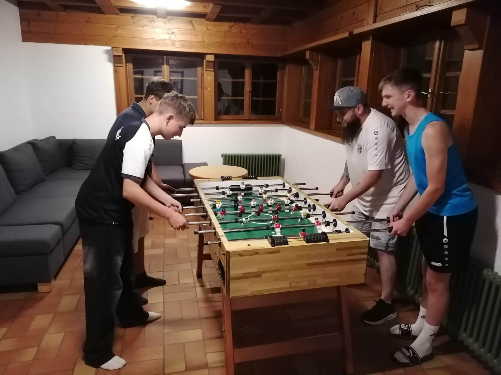 Gegen 23:30 Uhr kamen die Taxis zurück zur Unterkunft. Dort wurde erst mal alles auf links gedreht: Tischkicker und Tischtennisplatte wurden begeistert in Beschlag genommen. An Schlaf war erstmal nicht zu denken – und wer es wagte, einzuschlafen, wurde mit Edding „verschönert“. Die Bilder ersparen wir euch lieber – nur so viel: Die Jungs können eindeutig besser kicken als malen…