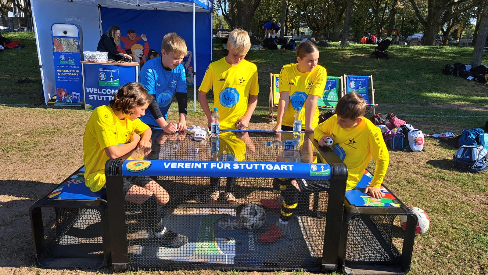 Zur Begrüßung bekam jedes Kind erst einmal ein originales DFB Heimtrikot für die Heim EM 2024 geschenkt. Zusätzlich einen WFV Sportbeutel mit Essensgutscheinen und Freigetränken.