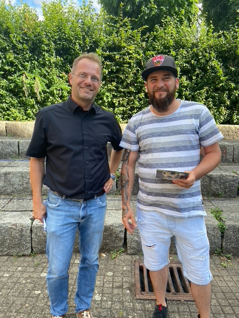 (Links Herr Nowak, stellvertretender Schulleiter Gymnasium Mengen, rechts Manuel, Jugendleiter SV Ennetach)