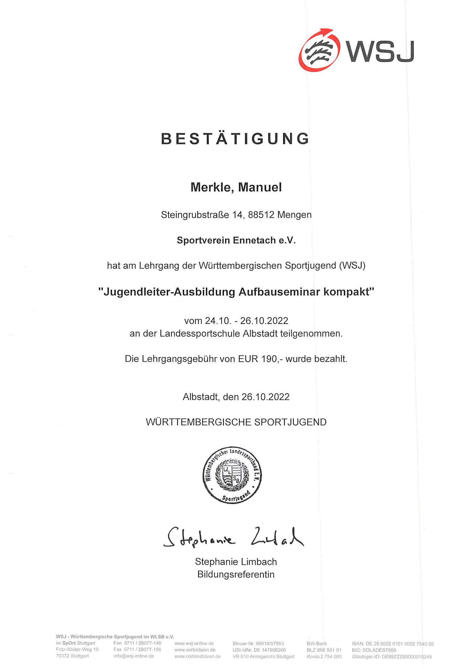 Jugendleiter Manuel Merkle war für 3 Tage an der Landessportschule auf Fortbildung