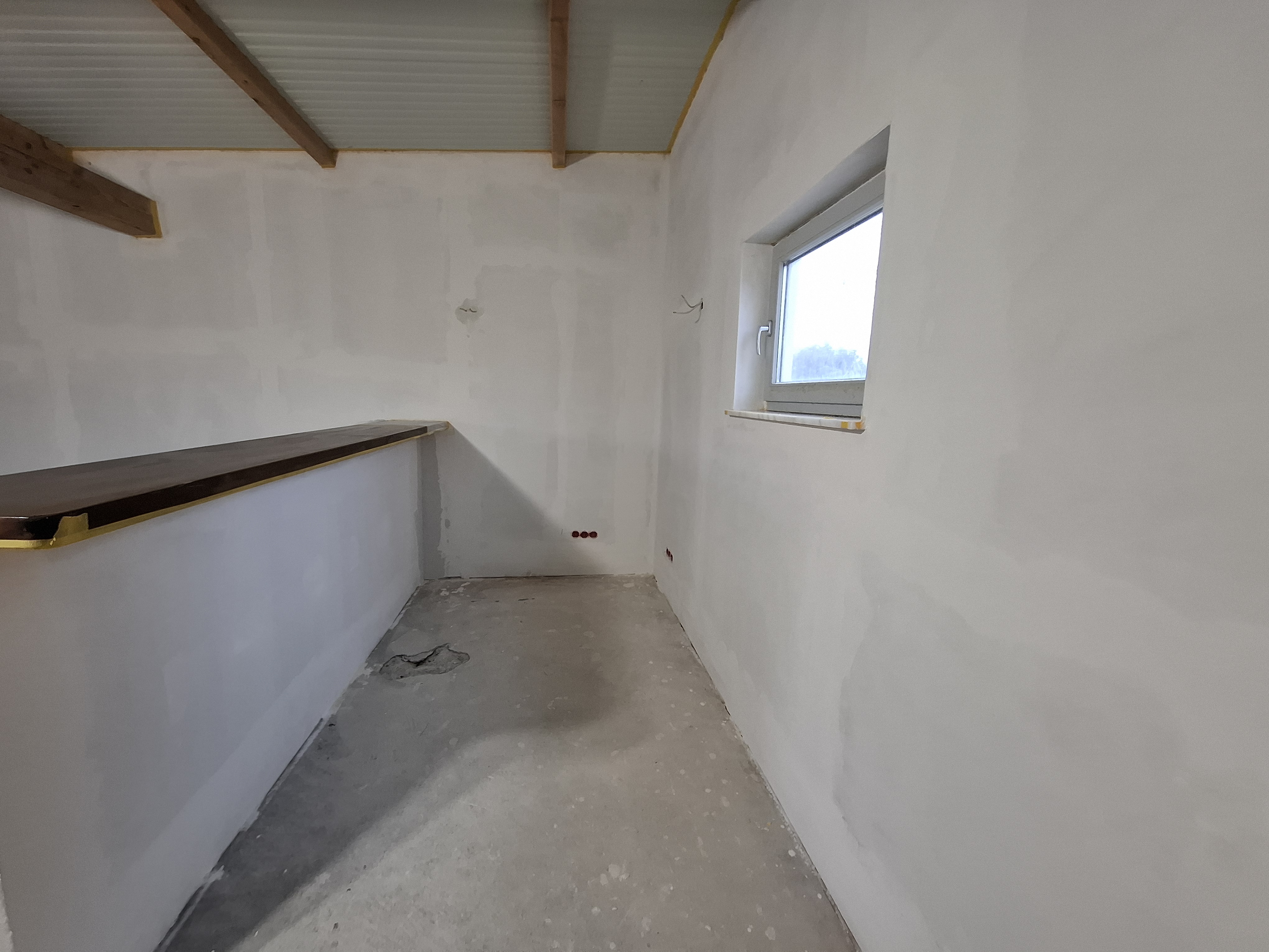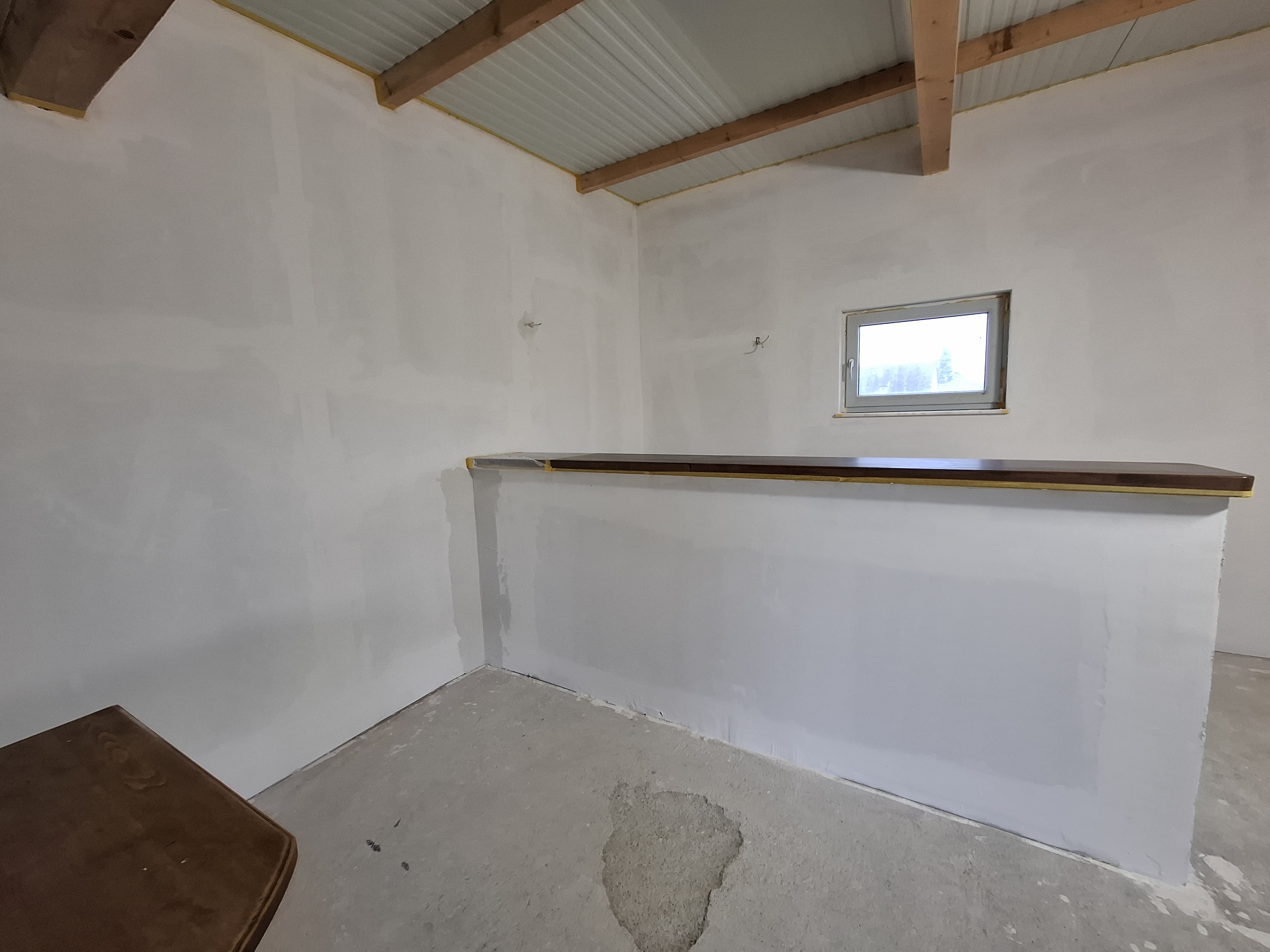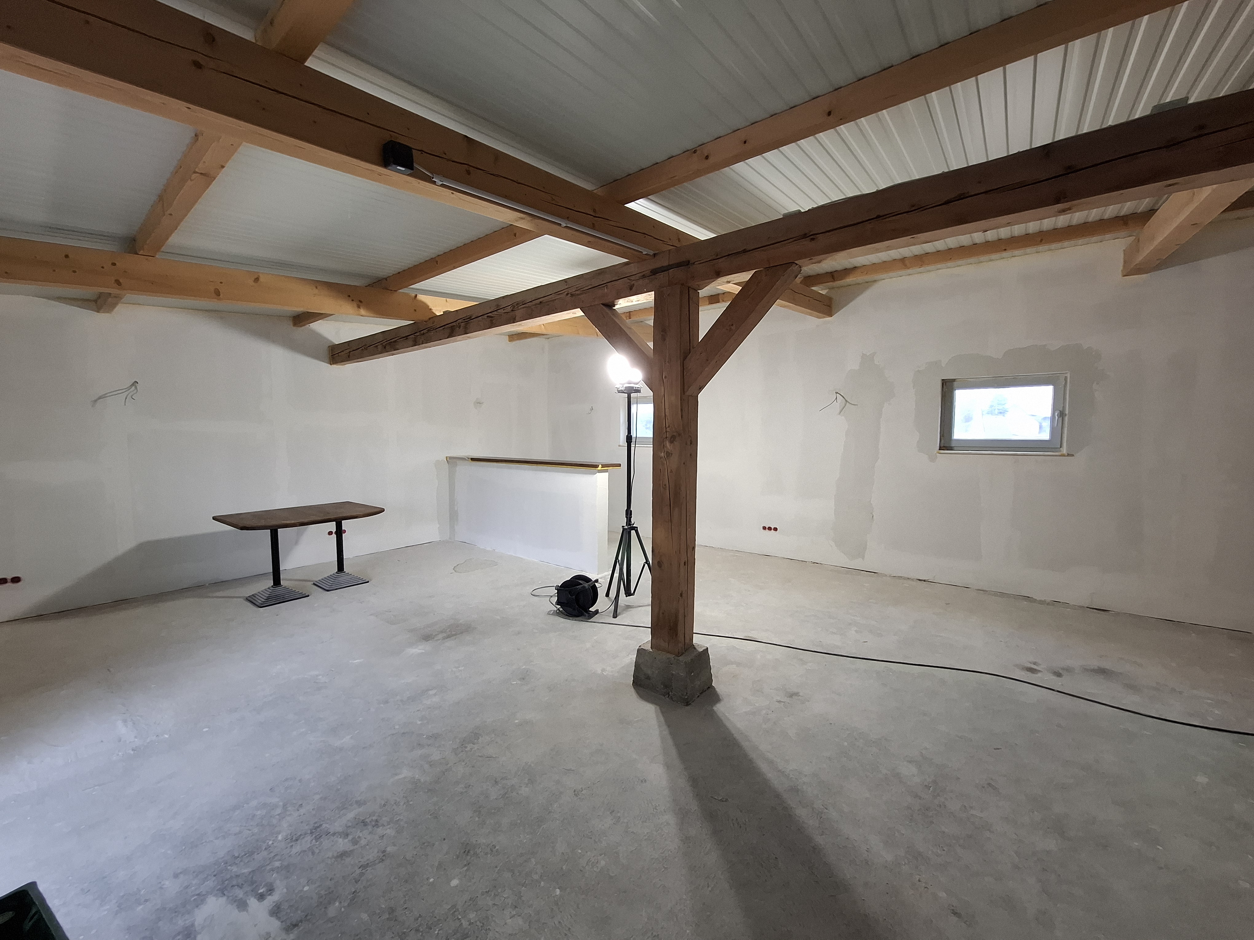 Nun konnte mit der Unterkonstruktion für den Trockenbau begonnen werden. Lattungen wurden angebracht, tragende Wände mit Holz verkleidet, die Bar an der Wand befestigt und die alte Grube für die ehemalige Waage gefüllt.